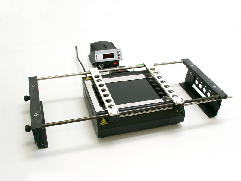 Může se rovněž použit pro reflow proces u jednostranných DPS a pro reballing BGA součástek Rovnoměrné rozložení tepla IR zajišťuje bezkontaktní postupné zahřívání sestavy, proto je IRHP 200 dokonale vhodná pro bezolovnaté pájení. Řídicí stanice může být umístěna nezávisle na topné desce na pracovním stole.