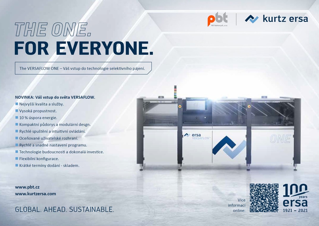 VERSAFLOW ONE nyní rozšiřuje řadu zařízení pro inline selektivní pájení Ersa jako výchozí model. Využívá desetiletí získávaného know-how v podobě osvědčeného hardwaru a intuitivního softwaru (ERSASOFT 5). Nastavit, zapnout, pájet – optimální selektivní pájení nemůže být rychlejší ani jednodušší. S nejvyššími nároky na kvalitu, výkon a snadnou údržbu. Kromě toho je VERSAFLOW ONE celosvětově nejlépe dostupný a jeho dodací lhůta bude přibližně dva až čtyři týdny.