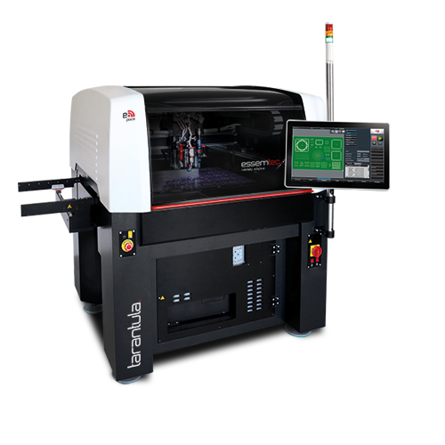 šasí, vyplněným minerální hmotou, která účinně tlumí vibrace a eliminuje teplotní dilatace. Důležitou součástí stroje je i laser, který mapuje prohnutí jednotlivých DPS. Tarantula je provozována s dopravníkem se SMEMA rozhraním.