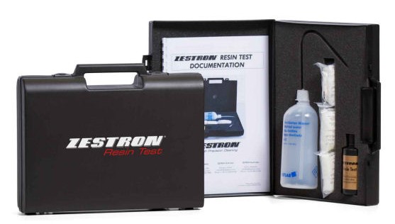 The ZESTRON® Resin Test visually and temporarily identifies the local distribution of resin based residues on electronic assemblies via a color reaction. Critical resin residues, which cause poor adhesion of conformal coatings and delamination effects can be localized during the production and removed by a cleaning step. Thus the critical resin amount of <40 μg/cm² (258.06 μg/sq in) according to J-STD 001 can be met.