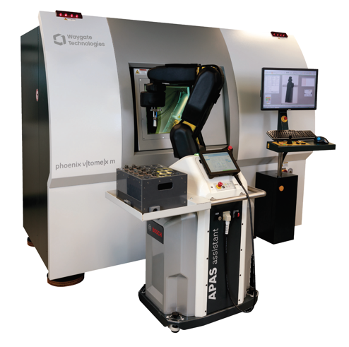The phoenix v|tome|x m is a versatile X-ray microfocus CT system for 3D metrology and analysis with up to 300 kV / 500 W. Beyond down to < 1 µm detail detectability, the system offers industry leading magnification and power at 300 kV. Next generation dynamic 41 digital detector array for 2-3x faster CT scans or doubled CT resolution, the click & measure|CT automatization functionality as well as its optional collaborative robot make its production edition an efficient 3D inspection tool.