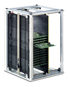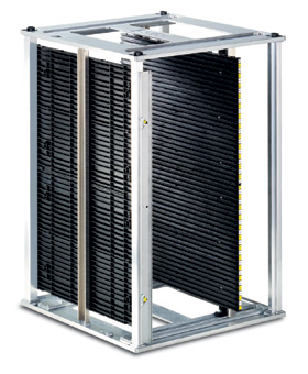 Precision, stability and flexible handling are important features for the use of the PCB Magazines in automated assembly lines. The stable and robust frame construction guarantees a long lasting use of the cab magazine in your production. The rack walls are manufactured from conductive material.