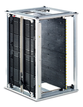 For automated assembly lines. The stable and robust frame construction guarantees a long lasting use of the cab magazine in your production. The rack walls are manufactured from conductive material.