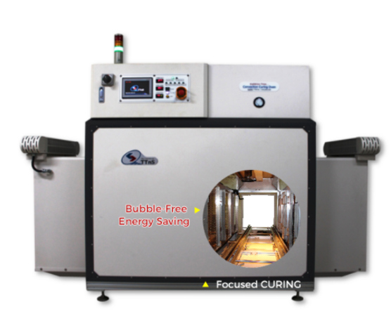 This fully automated, electric-powered, convection curing oven completes a conformal coating production line and yields bubble-free and highly transparent coating films for inline mass production.